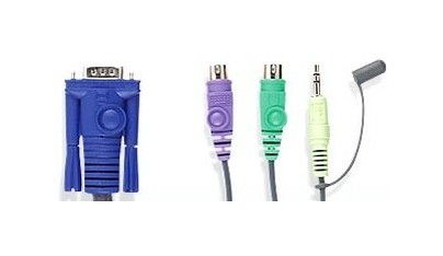 Наиболее компактный переключатель KVM с запрессованными (формованными) кабелями для соединения с компьютерами;