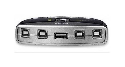 Дает возможность четырем компьютерам совместно использовать одно периферийное USB устройство