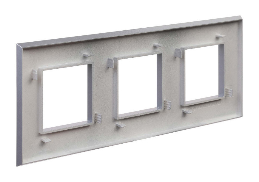 Рамки ДКС, разработанные студией Артемия Лебедева, предназначены для декоративного оформления электроутановочных изделий. Рамка имеет цвет "Закаленная сталь" - строгий, лаконичный и стильный оттенок с изысканным приглушенным блеском. Рамка сочетается с оттенками холодной цветовой гаммы и хорошо вписывается в интерьеры, выдержанными в стилистике "high-tech". В рамке предусмотрено 3 поста под ЭУИ (максимум 6 модулей). При этом рамка может быть размещена как горизонтально, так и вертикально. Габаритные размеры: 235х90 мм. Материал – термопласт.