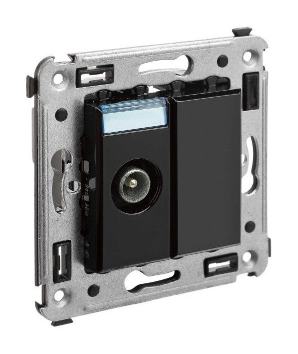 Проходные телевизионные розетки предназначены для скрытой установки в стенах и применяются для подключения телевизионного кабеля. TV-розетки производства ДКС рассчитаны на частоту до 2400 Гц. Материал – металл, пластик. Пластиковые части устройства имеют цвет "Черный квадрат" – таинственный, темный и глубокий оттенок, несущий отголоски традиций русского авангарда.