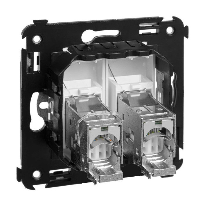Компьютерная розетка двойная используется для подключения компьютерной техники и соединения с патч-панелью. Компьютерная розетка предназначена для скрытого монтажа в стену. Розетка RJ-45 категории 5e – это наиболее популярная на сегодняшний день модель. Она позволяет организовать сеть с частотой 125 МГц и скоростью до 1000 Мбит/с. Материал – металл, термопласт. Пластиковые части устройства имеют оттенок "Белое облако" – это чистый белый оттенок, сочетающийся с любыми цветами палитры "Avanti". Сложный воздушный оттенок оттеняет другие цвета, создает ощущение покоя и умиротворения.