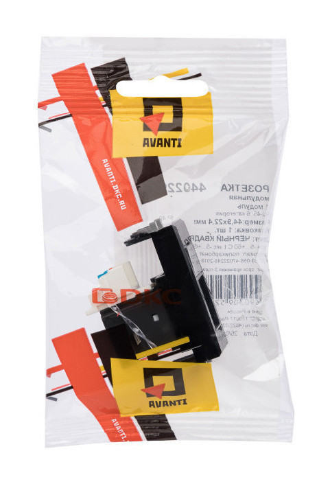 DKC / ДКС Компьютерная розетка "Черный квадрат" RJ-45 модульная, кат. 6, 1 мод, Avanti 1 шт.