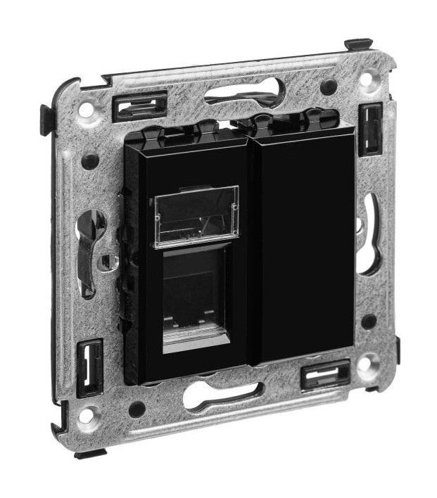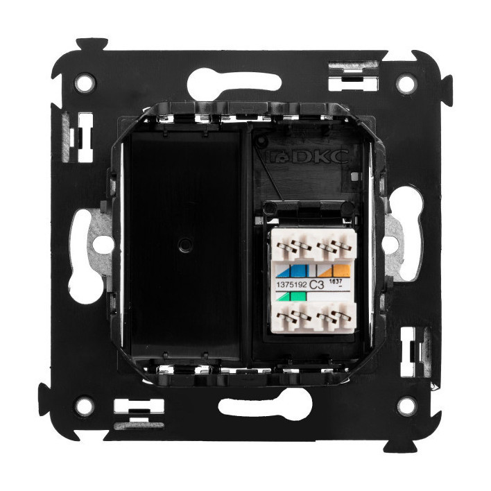 Телефонная розетка RJ-12 от ДКС устанавливается в стену (скрыто) и применяется для связи телефонных линий или же коммутации телефонных аппаратов с розеткой. Материал – металл, термопласт. Пластиковые части имеют нежный оттенок "Черный квадрат" – изысканный, таинственный, мистический черный, придающий особый шарм лаконичным формам рамок для ЭУИ "Avanti".