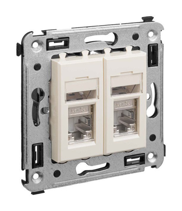 Компьютерная розетка двойная используется для подключения телефонных/компьютерных кабелей и подключения патч-панелей. Компьютерная розетка предназначена для скрытого монтажа в стену. Розетка RJ-45 категории 5e – это наиболее популярная на сегодняшний день модель, обеспечивающая высокую скорость передачи данных (до 1000 Мбит/с). Материал – металл, пластик. Пластиковые части изделия выполнены в спокойном пастельном цвете "Ванильная дымка", сочетающемся со светлыми тонами и насыщенными теплыми оттенками.