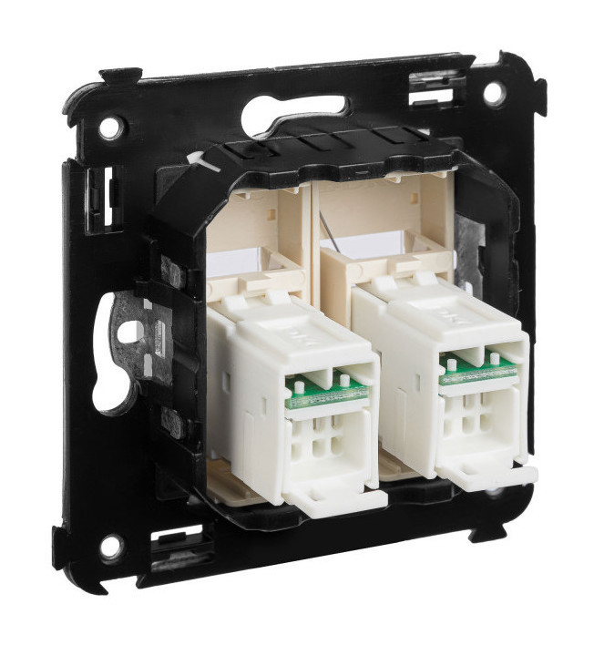 Компьютерная розетка двойная используется для подключения телефонных/компьютерных кабелей и подключения патч-панелей. Компьютерная розетка предназначена для скрытого монтажа в стену. Розетка RJ-45 категории 5e – это наиболее популярная на сегодняшний день модель, обеспечивающая высокую скорость передачи данных (до 1000 Мбит/с). Материал – металл, пластик. Пластиковые части изделия выполнены в спокойном пастельном цвете "Ванильная дымка", сочетающемся со светлыми тонами и насыщенными теплыми оттенками.