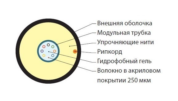 | Защитное покрытие волокна | модульная конструкция (loose tube) |
