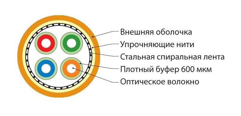 | Защитное покрытие волокна | плотное буферное покрытие (tight buffer) |