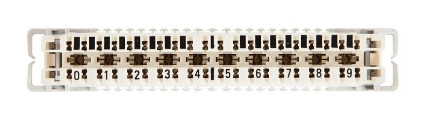Представляет собой пластиковую конструкцию с десятью встроенными парами врезных размыкаемых контактов, к которым с одной стороны попарно подключаются жилы соединительного кабеля, а с другой стороны медные пары абонентских кабелей.