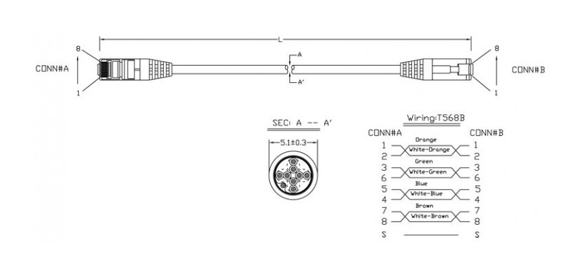 | Внешний диаметр кабеля | 5,1 мм |
