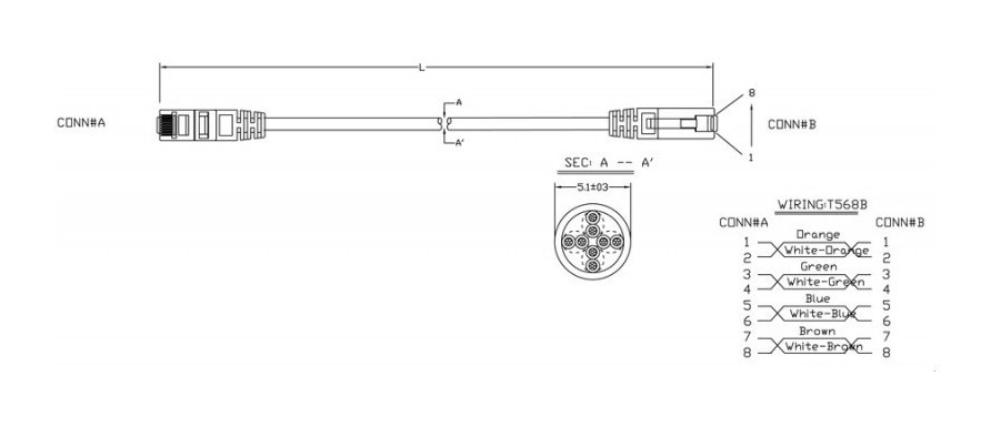 | Цвет витых пар | синий-белый/синий, оранжевый-белый/оранжевый, зеленый-белый/зеленый, коричневый-белый/коричневый |