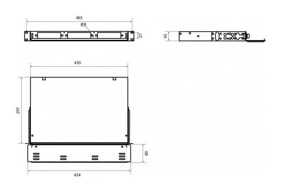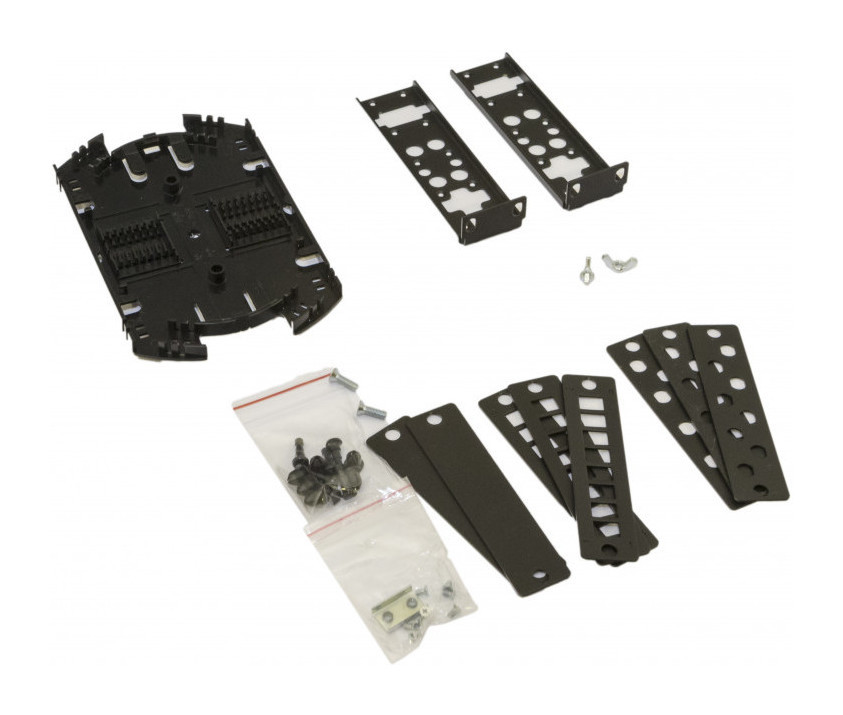 | Комплектация | корпус -1 шт. сплайс кассета - 1 шт. крышка сплайс-кассеты - 1 шт. сменная планка (панель) 8 FC/ST - 3 шт. сменная планка (панель) 8 SC/DLC - 3 шт. панель-заглушка - 2 шт. фиксатор панели - 6 шт. уголки для установки в 19 конструктивы |