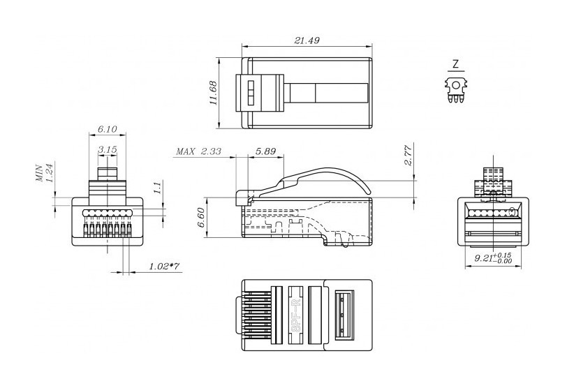 | Материал корпуса RJ-45 | поликарбонат (PC) |