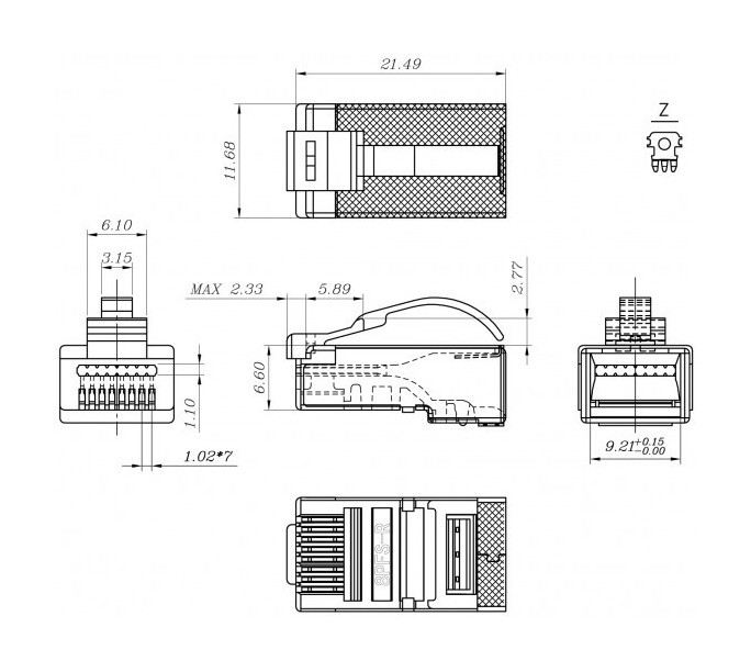 | Материал корпуса RJ-45 | поликарбонат (PC) |