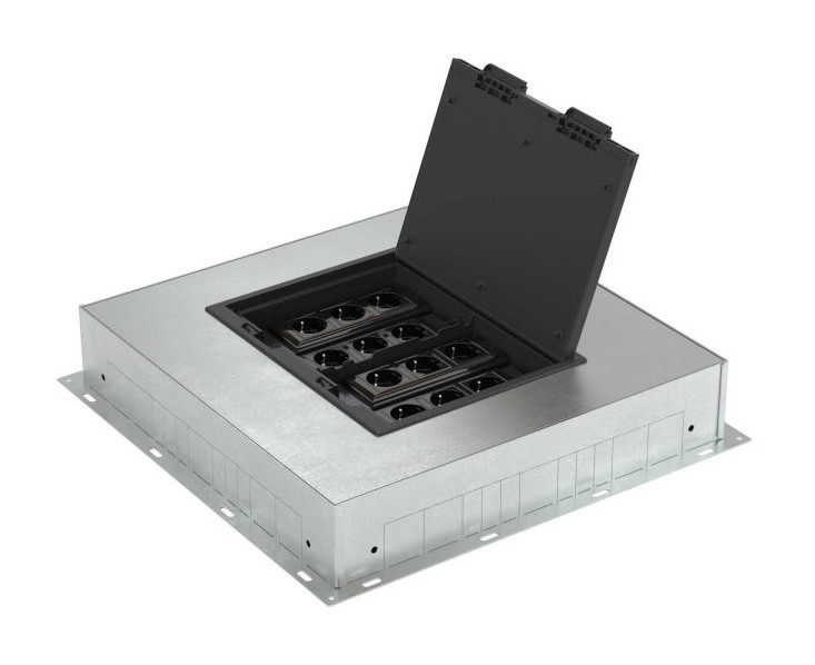 | Комплектация | • временная крышка из оцинкованной стали 0,8 мм; • металлическая пластина для фиксации кабельных вводов; • 6 кабельных вводов диаметром 50 мм для ввода труб в опалубку; • метизы; • инструкция по монтажу. |