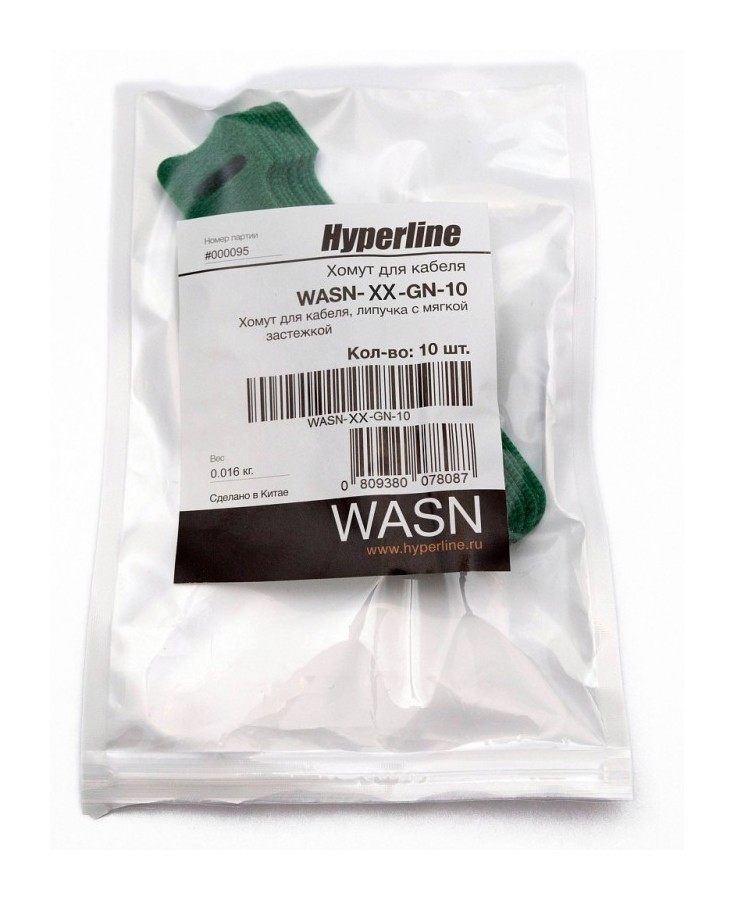 Hyperline Хомут для кабеля, липучка с мягкой застежкой, 210x15 мм, зеленый (10 шт.)