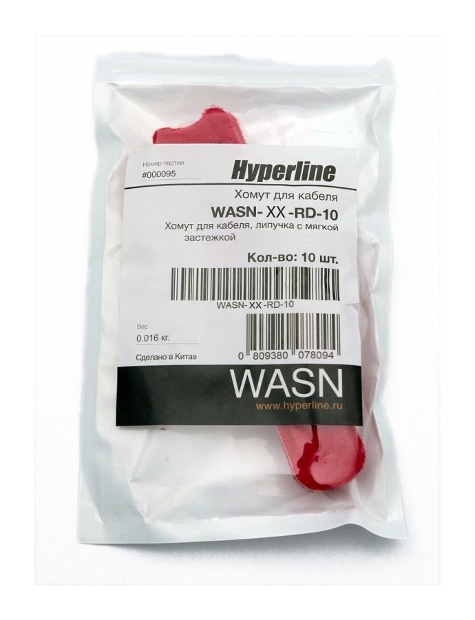 Hyperline Хомут для кабеля, липучка с мягкой застежкой, 210x15 мм, красный (10 шт.) 1 шт.