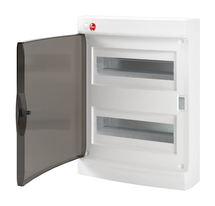 Настенный модульный щиток предназначен для монтажа в жилых и административных помещениях для установки автоматических выключателей любых производителей: таймеров, устройств защитного отключения и управления освещением и т.д. В комплект поставки входят: оцинкованная DIN-рейка и суппорт, заглушки для пустых модулей, сборочные винты и заглушки для них, самоклеящаяся этикетка для маркировки цепей. Преперфорированные отверстия и насечки на задней стенке обеспечивают точное соединение с пластиковыми трубами и обеспечивают легкий монтаж. Специальная конструкция петель дает возможность открывать дверцу более чем на 180°. Степень пыле- и влагозащиты IP 41. Количество модулей - 24. Параметры щитка: ширина - 301 мм, высота - 402 мм, глубина - 113 мм. Материал - термостойкий и ударопрочный пластик. Цвет - белый.