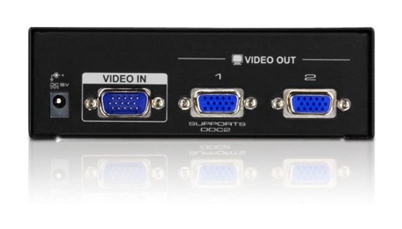 2-х портовый видеоразветвитель VS132A – устройство, которое дублирует видеосигнал от одного источника на 2 устройства отображения. Устройство усиливает сигнал, что увеличивает дальность передачи видеосигнала до 65 м. Трехуровневое каскадирование видеоразветвителей позволяет дублировать изображение с одного источника на 8 устройств отображения.