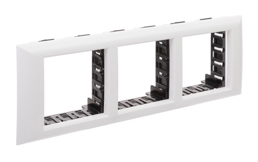 ЭУИ "Avanti" – это образец сочетания передового дизайна и высокой надежности. Их можно применять как на промышленных объектах, так и в жилых помещениях с дизайнерским ремонтом. Эта серия была вдохновлена традициями русского авангарда начала XX века. В состав системы входят: каркасы, механизмы и рамки. Механизмы устанавливаются в кабель-каналы, лючки или башенки с помощью каркасов и рамок. Особая конструкция аксессуров позволяет повысить степень пыле- и влагозащиты до IP 55, что дает возможно размещать электроустановочные изделия даже в помещениях с повышенным уровнем влажности и загрязненности, не опасаясь попадания влаги или мусора во внутреннюю часть механизма. При монтаже механизм устанавливается в рамку, а та, в свою очередь, фиксируется на каркасе и устанавливается в нужном месте - на стене, в лючке, башенке или кабель-канале. Рамка изготовлена из АБС-пластика и имеет цвет "Белое облако". Предназначена для установки шести модулей ЭУИ.