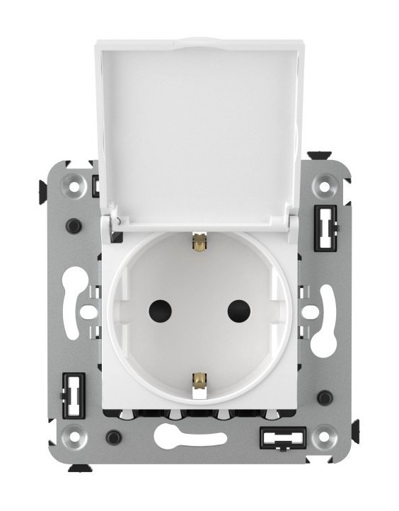 Розетка 2P+E с крышкой – это однофазная розетка с заземлением. Изделие предназначено для скрытого монтажа в стену и может применяться как в жилых, так и в коммерческих или производственных помещениях. Крышка защищает механизм от загрязнения и попадания влаги в то время, когда розетка не используется. Номинальное напряжение – 230 В, номинальный ток – 16 А. Материал: металл, термопласт. Пластиковые элементы устройства имеют благородный белый оттенок "Белое облако", который ненавязчиво вписывается в интерьер любой цветовой гаммы и прекрасно сочетается с любыми оттенками.