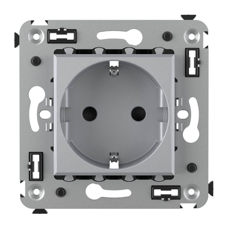 Розетка 2P+E – это однофазная розетка с заземлением. Изделие предназначено для скрытого монтажа в стену и может применяться как в жилых, так и в коммерческих или производственных помещениях. Номинальное напряжение – 230 В, номинальный ток – 16 А. Материал: металл, термопласт. Пластиковые элементы устройства имеют стильный оттенок "Закаленная сталь" и сдержанный матовый блеск, придающий электроустановочному изделию утонченность и изящество.