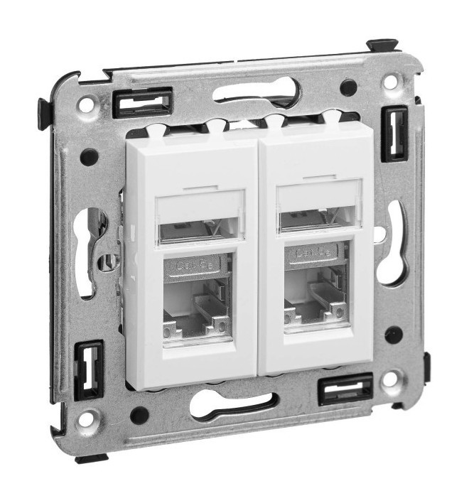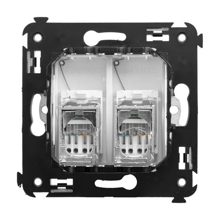Компьютерная розетка двойная используется для подключения компьютерной техники и соединения с патч-панелью. Компьютерная розетка предназначена для скрытого монтажа в стену. Розетка RJ-45 категории 5e – это наиболее популярная на сегодняшний день модель. Она позволяет организовать сеть с частотой 125 МГц и скоростью до 1000 Мбит/с. Материал – металл, термопласт. Пластиковые части устройства имеют оттенок "Белое облако" – это чистый белый оттенок, сочетающийся с любыми цветами палитры "Avanti". Сложный воздушный оттенок оттеняет другие цвета, создает ощущение покоя и умиротворения.