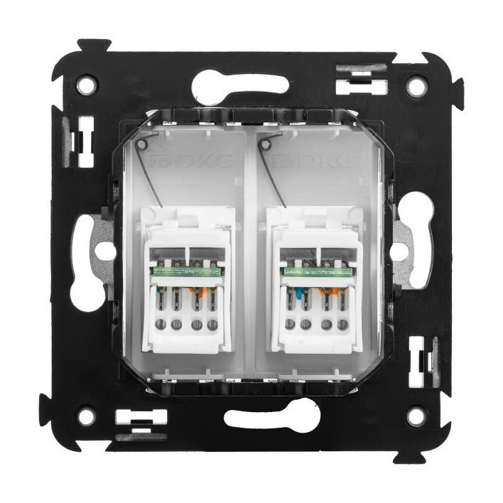 Компьютерная розетка двойная используется для подключения компьютерной техники и соединения с патч-панелью. Компьютерная розетка предназначена для скрытого монтажа в стену. Розетка RJ-45 категории 5e – это наиболее популярная на сегодняшний день модель. Она позволяет организовать сеть с частотой 125 МГц и скоростью до 1000 Мбит/с. Материал – металл, термопласт. Пластиковые части изделия выполнены в цвете "Белое облако" – самом универсальном оттенке из цветовой гаммы ЭУИ "Avanti". Спокойный и сдержанный, в интерьере этот оттенок создает атмосферу покоя и уюта.