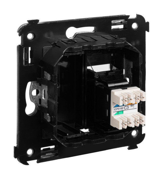 Телефонная розетка RJ-12 от ДКС устанавливается в стену (скрыто) и применяется для связи телефонных линий или же коммутации телефонных аппаратов с розеткой. Материал – металл, термопласт. Пластиковые части имеют нежный оттенок "Черный квадрат" – изысканный, таинственный, мистический черный, придающий особый шарм лаконичным формам рамок для ЭУИ "Avanti".