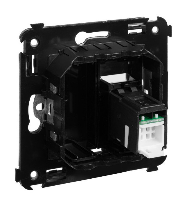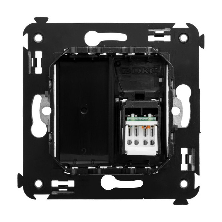 Компьютерная розетка двойная используется для подключения компьютерной техники или же соединения с патч-панелью. Компьютерная розетка предназначена для скрытого монтажа в стену. Розетка RJ-45 категории 5e – это наиболее популярная на сегодняшний день модель. Она позволяет организовать сеть с частотой 125 МГц и скоростью до 1000 Мбит/с. Материал – металл, термопласт. Пластиковые части устройства имеют оттенок "Черный квадрат" – самый глубокий, таинственный и многогранный оттенок из всей палитры цветовых решений "Avanti".