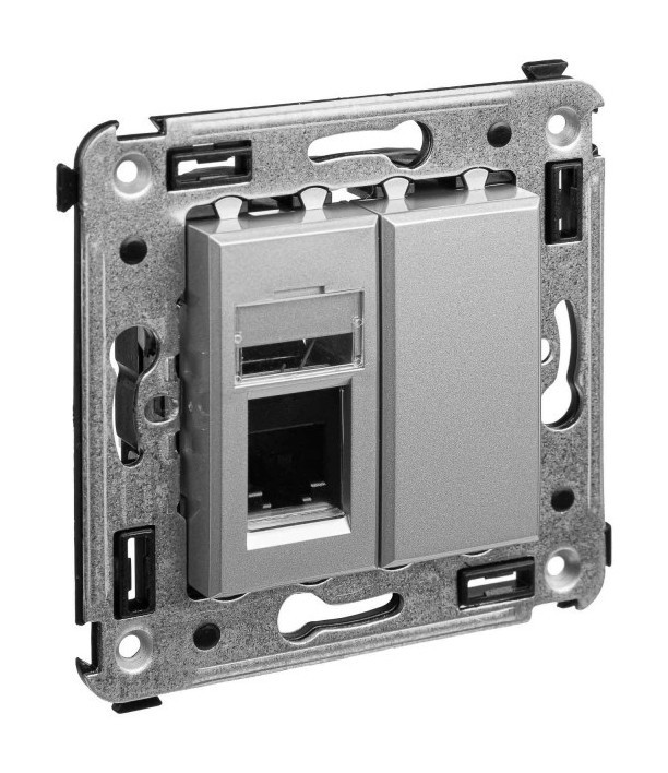 Телефонная розетка RJ-12 от ДКС устанавливается в стену (скрыто) и применяется для коммутации линий телефонной связи в патч-панелях или для связи телефонных аппаратов с розеткой. Материал – металл, термопласт. Пластиковые части имеют цвет оттенок "Закаленная сталь" – изысканный серебристый оттенок, имеющий приглушенный металлический блеск. Он сочетается с интерьерами, выдержанными в холодной цветовой гамме и отлично вписывается в стилистику дизайна "high-tech".