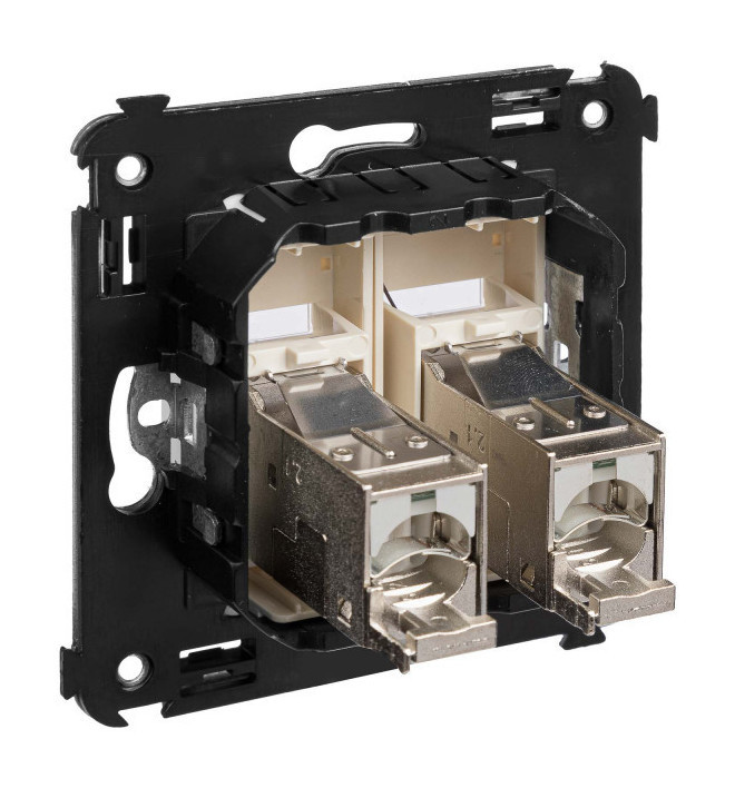 Компьютерная розетка двойная используется для подключения телефонных/компьютерных кабелей и подключения патч-панелей. Компьютерная розетка предназначена для скрытого монтажа в стену. Розетка RJ-45 категории 5e – это наиболее популярная на сегодняшний день модель, обеспечивающая высокую скорость передачи данных (до 1000 Мбит/с). Материал – металл, пластик. Пластиковые части изделия выполнены в спокойном пастельном цвете "Ванильная дымка", сочетающемся со светлыми тонами и насыщенными теплыми оттенками.