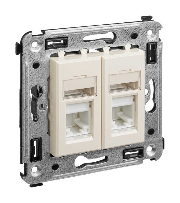 Компьютерная розетка двойная используется для подключения телефонных/компьютерных кабелей и подключения патч-панелей. Компьютерная розетка предназначена для скрытого монтажа в стену. Розетка RJ-45 категории 5e – это наиболее популярная на сегодняшний день модель, обеспечивающая высокую скорость передачи данных (до 1000 Мбит/с). Материал – металл, пластик. Пластиковые части изделия выполнены в спокойном пастельном цвете "Ванильная дымка", сочетающемся со светлыми тонами и насыщенными теплыми оттенками.