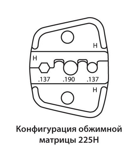 | Особенности | Обжимная матрица (губки) типоразмера 225H Фиксатор закрытого положения |
