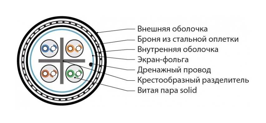 | Тип внутренней оболочки | LSZH (малодымный безгалогенный компаунд) |