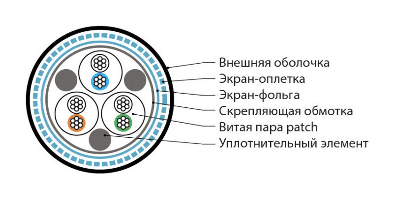 | Общий экран | алюминизированная полиэстерная пленка и оплетка из медных луженых проволок |