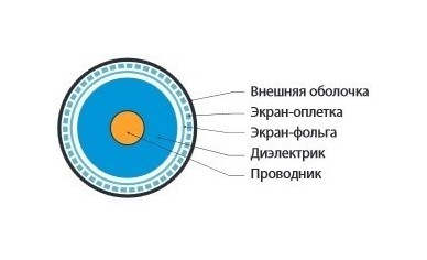 | Внешний проводник (экран) | алюминизированная полиэстерная пленка и медная луженая проволока |