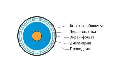 | Внешний проводник (экран) | алюминизированная полиэстерная пленка и медная луженая проволока |