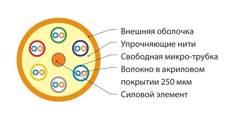 | Защитное покрытие волокна | микротрубка из малодымного безгалогенного компаунда (LSZH) |