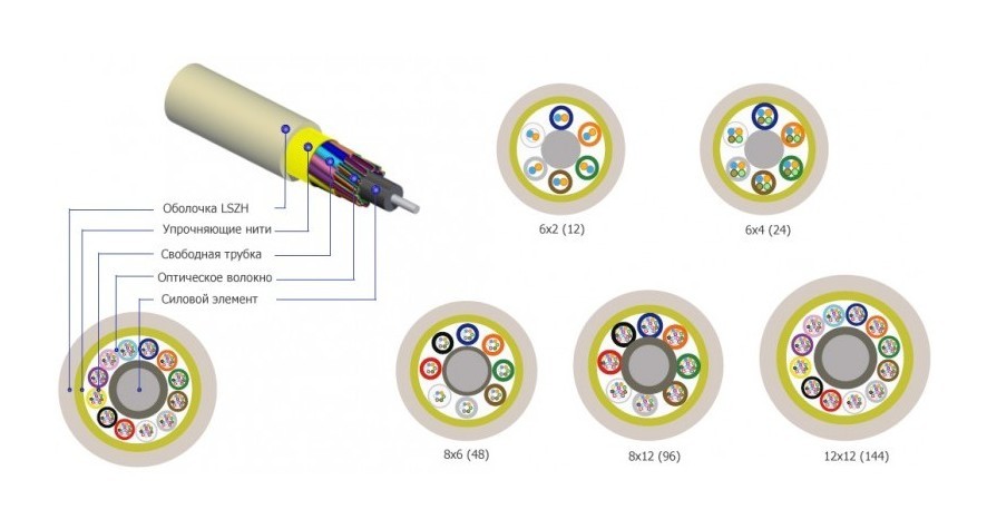 | Конструкция кабеля (микротрубки х волокна) | 8х6 |