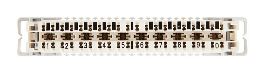 Представляет собой пластиковую конструкцию с десятью встроенными парами врезных размыкаемых контактов, к которым с одной стороны попарно подключаются жилы соединительного кабеля, а с другой стороны медные пары абонентских кабелей.