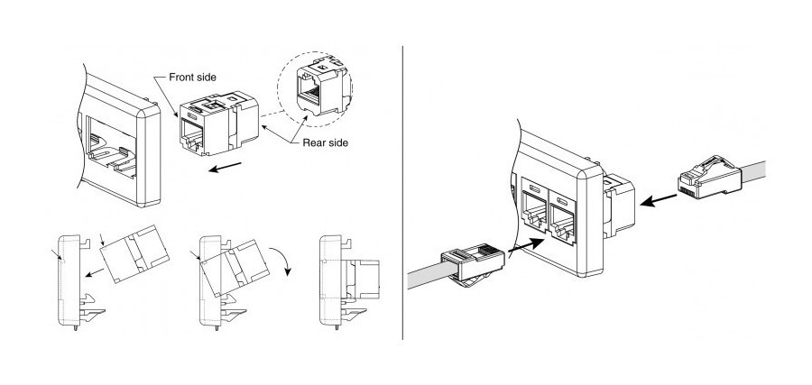 PANDUIT Универсальный соединительный модуль Mini-Com® , 8P8C(RJ45) типа “мама”, неэкраниранированный, категория 6, светло-серый (не для коробок поверхностного монтажа) 1 шт.