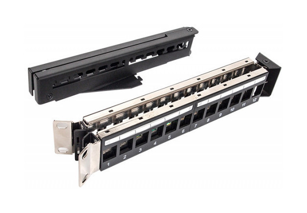 | Особенности | Устанавливается в 19-дюймовые шкафы и стойки Совместимость со вставными модулями типа Keystone Угловая конструкция позволяет не использовать горизонтальные организаторы, направляя шнуры сразу в вертикальные организаторы Подходит как для экраниров |