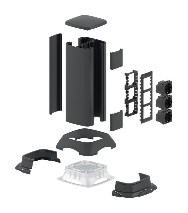 | Комплектация | • стойка колонны алюминиевая – 1 шт.; • крышка колонны алюминиевая – 2 шт.; • заглушка торцевая верхняя пластик – 1 шт.; • база на пол металлическая – 1 шт.; • накладка лицевая на базу пластик. – 1 шт.; • накладка внутренняя на базу плас. – |