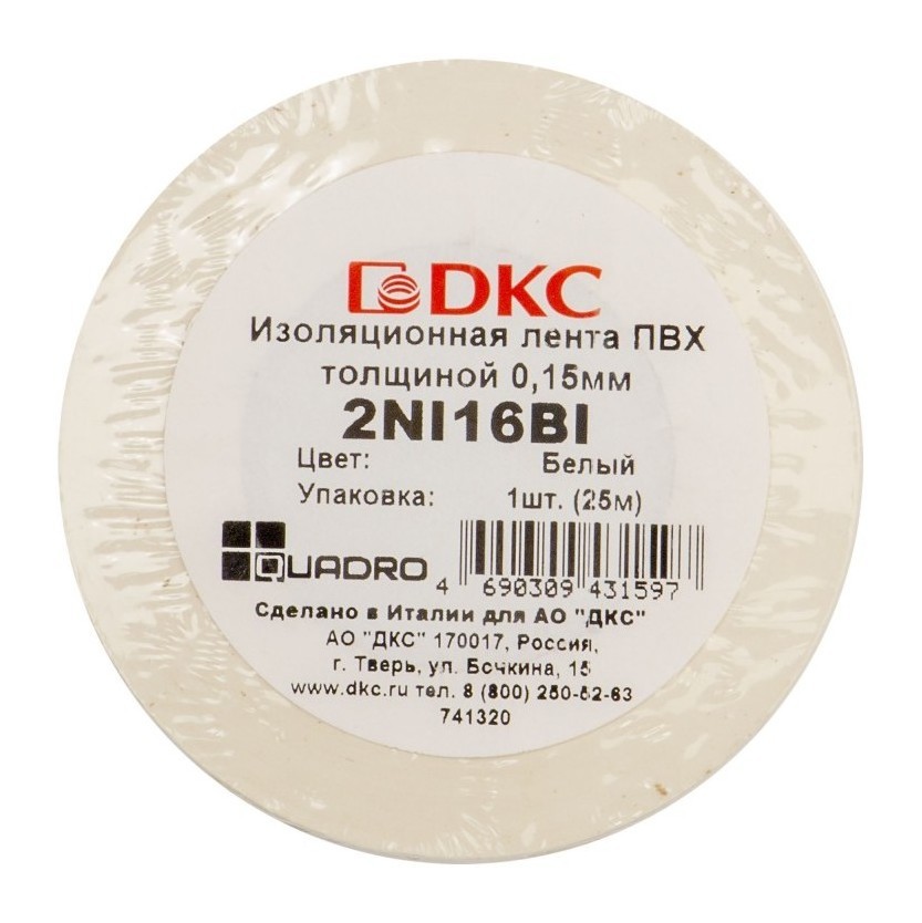 Изоляционная лента - обязательный спутник любых электротехнических работ, профессиональных и бытовых. Качественная изоляция необходима при соединении/сращивании проводов. Очень важно, чтобы лента демонстрировала отличные изоляционные качества, хорошо клеилась и надолго сохраняла свои свойства. Изоляционная лента ДКС соответствует всем этим пожеланиям. Она надежно фиксируется и долго служит, защищая пользователя от случайных электротравм, а место соединенияч проводов - от загрязнения и попадания влаги. Ширина - 19 мм, длина - 25 м. Цвет - белый.