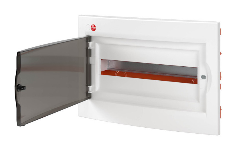 Встраиваемый распределительный щиток ДКС предназначен для монтажа в жилых и административных помещениях для установки автоматических выключателей любых производителей: таймеров, устройств защитного отключения и управления освещением и т.д. Щиток имеет оцинкованную DIN-рейку и суппорт, заглушки для пустых модулей, сборочные винты и заглушки для них, самоклеящуюся этикетку для маркировки цепей. Преперфорированные отверстия и насечки на задней стенке обеспечивают точное соединение с пластиковыми трубами и обеспечивают легкий монтаж. Дверца выполнена из затемненного полупрозрачного пластика. Специальная конструкция петель дает возможность открывать дверцу более чем на 180°. Степень пыле- и влагозащиты IP 41. Количество модулей - 12. Параметры щитка: ширина - 441 мм, высота - 300 мм, глубина встраиваемой части - 77 мм. Материал - термостойкий пластик. Цвет - белый.