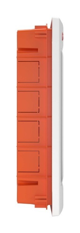 Встраиваемый распределительный щиток ДКС предназначен для монтажа в жилых и административных помещениях для установки автоматических выключателей любых производителей: таймеров, устройств защитного отключения и управления освещением и т.д. Щиток имеет оцинкованную DIN-рейку и суппорт, заглушки для пустых модулей, сборочные винты и заглушки для них, самоклеящуюся этикетку для маркировки цепей. Межосевое расстояние между рядами 125-150-175 мм. Преперфорированные отверстия и насечки на задней стенке обеспечивают точное соединение с пластиковыми трубами и обеспечивают легкий монтаж. Дверца выполнена из затемненного полупрозрачного пластика. Специальная конструкция петель дает возможность открывать дверцу более чем на 180°. Степень пыле- и влагозащиты IP 41. Количество модулей - 24. Параметры щитка: ширина - 345 мм, высота - 425 мм, глубина встраиваемой части - 77 мм. Материал - термостойкий и ударопрочный пластик. Цвет - белый.