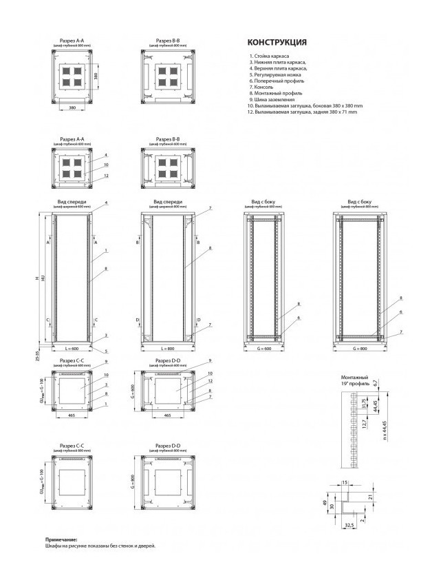 | Подробное описание материалов | Каркас, боковые стенки, двери, монтажные и поперечные профили - листовая сталь Консоли - отливка из сплава ЦАМ |