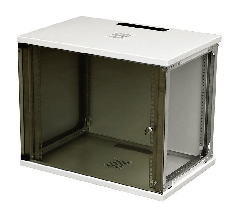 | Комплект поставки | • Каркас шкафа • 2 съемные боковые стенки • Задняя отвинчивающаяся стенка • Передняя стеклянная дверь • 19” L-образные монтажные профили (2 шт.) • Щеточный кабельный ввод • 1 выламываемая сплошная заглушка в нижней плите |