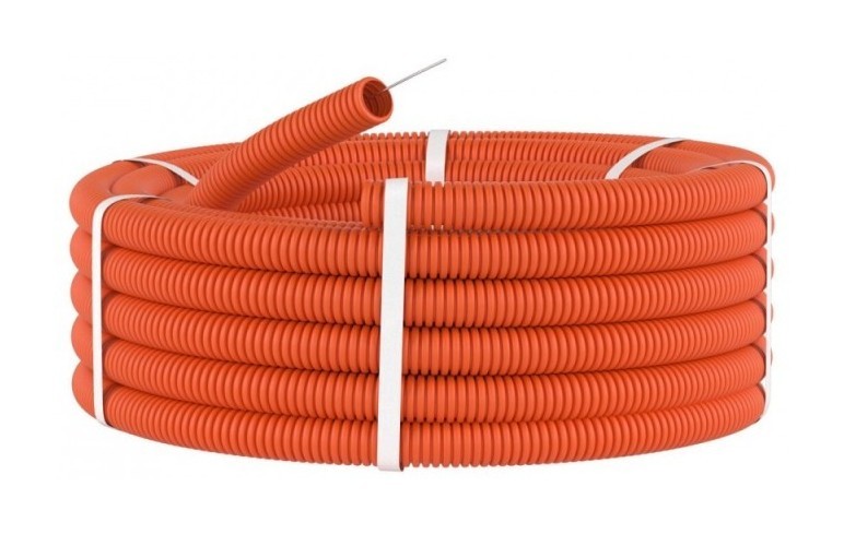 DKC / ДКС Труба гибкая гофрированная, номинальный ф20мм, ПНД, легкая, с протяжкой, цвет оранжевый (RAL 2004) (цена за метр)